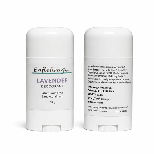 Coconut oil*; Lavender essential&; Baking soda. *Organic ingredients; *Biologique