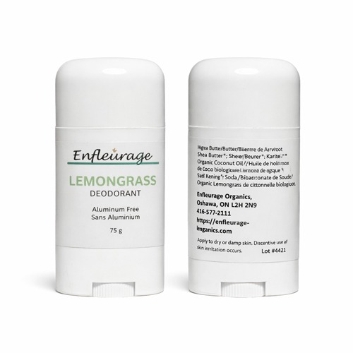 Coconut oil*; Lemongrass essential oil*; Baking soda. *Organic ingredients; *Biologique
