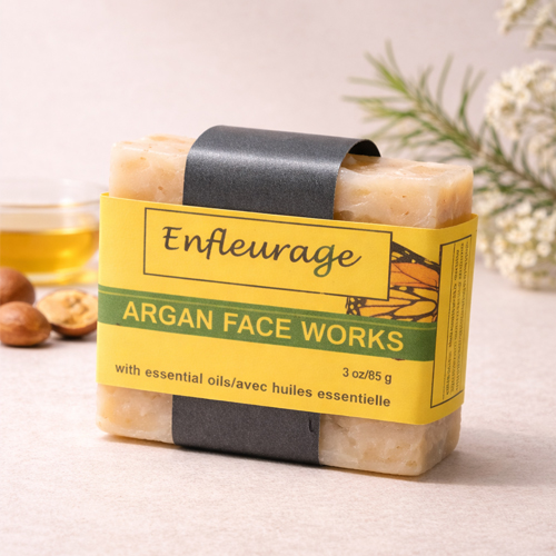 Our Argan Face Works is carefully crafted to cleanse your skin without stripping away its natural balance. It is made with gentle, organic, plant-based ingredients that lift away impurities while leaving your skin feeling soft, fresh, and comfortably clean. Free from harsh chemicals and synthetic fragrances, this bar is enriched with argan oil, which is high in skin-loving Vitamin E. It is ideal for daily use and suitable even for sensitive skin, nourishing your skin the way nature intended.